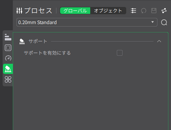 - サポートを有効にする場合は、サポートアイコンを選択して[サポートを有効にする]をチェックしてから[スライスプレート]