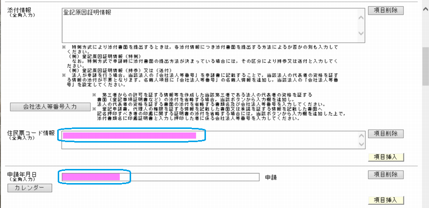 - 添付情報の[住民票コード情報入力]から住民票コード(11桁数字)を全角で記載する。