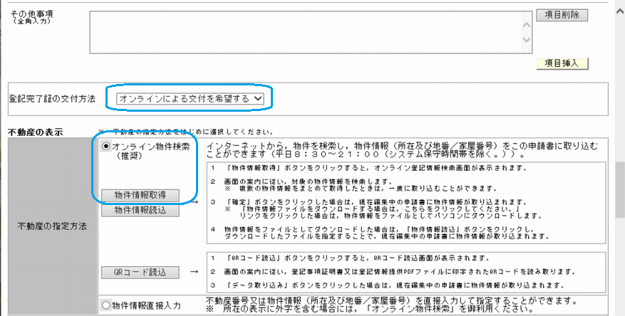 - 登記完了証の交付方法は「オンラインによる交付を希望する」を選択する。
