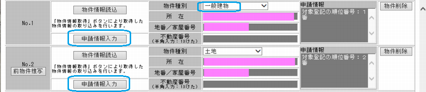 - 対象物件が複数ある場合は、物件の数だけ[物件情報取得]と[申請情報入力]を繰り返す。